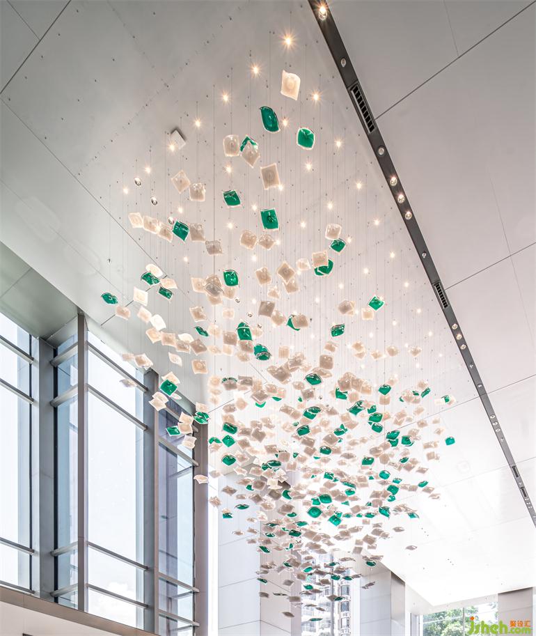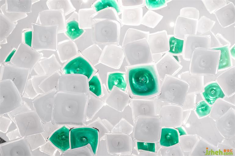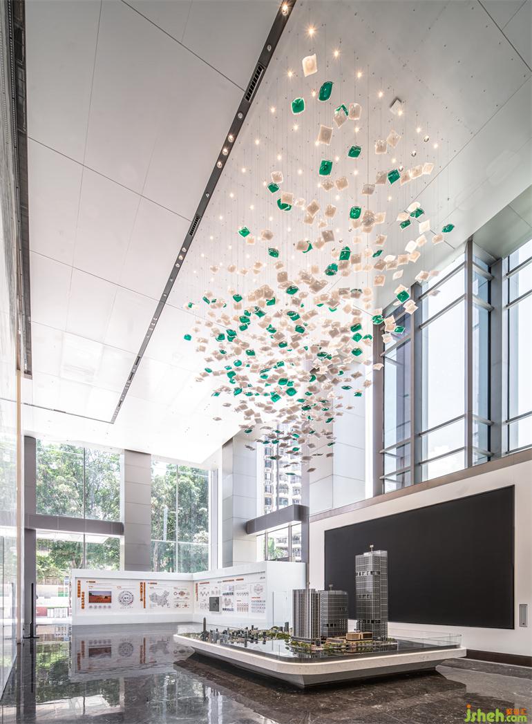 白与绿的“艺术之叶”漂浮在沙盘区上空,流动而有序的层次构造,室内设计师勾勒出充满律动感的环境。
