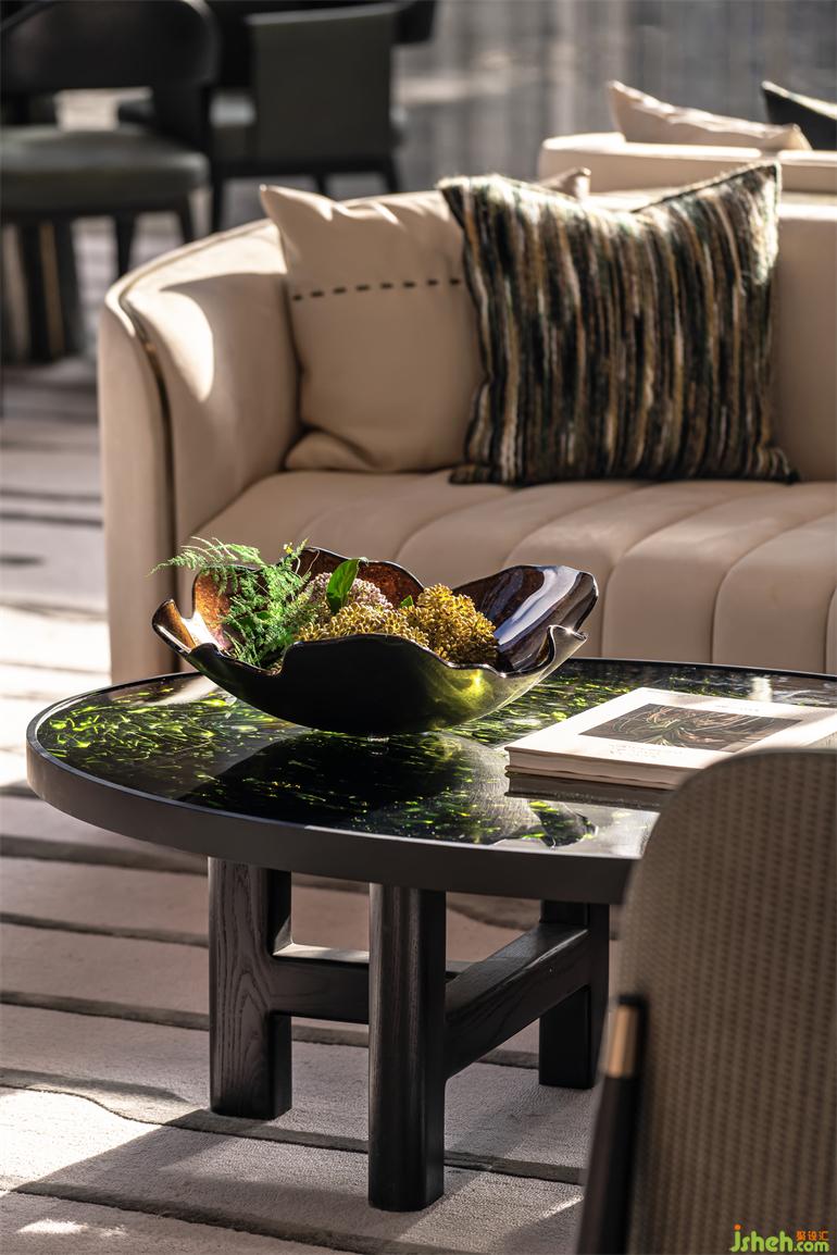 沙发蕴藏着设计师对材质、色彩、节奏的精心把控。室内设计师光影洒落在皮质沙发上,使空间更为精致、理性。