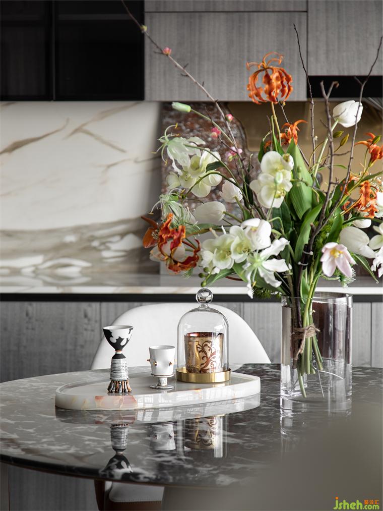 自然界的大理石通过艺术加工演变而成的灯具、样板房设计西班牙艺术家ALBERTO BUSTOS的手工陶艺品、专业进口水晶品牌GLASS的水晶饰品、The Baobab非凡格调香薰,充满灵性之美的艺术交汇,构成了一个低调奢华且“独一无二”的艺术空间。