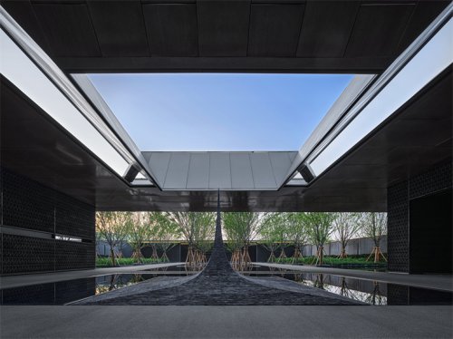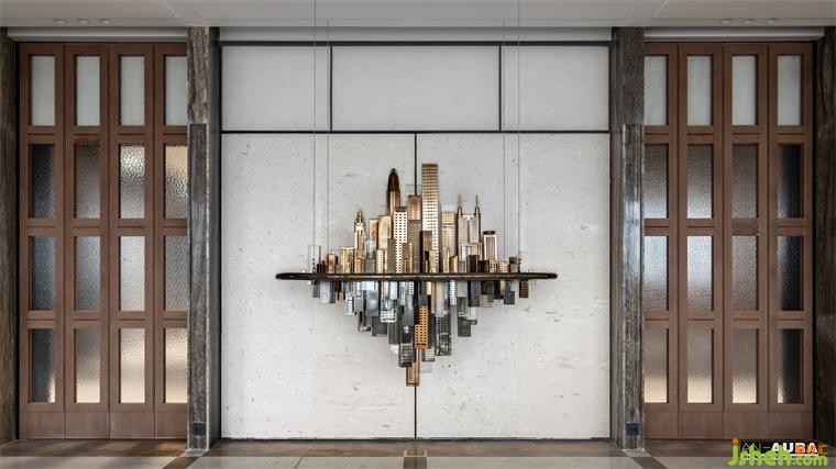 入口处建筑雕塑作为城市缩影示意时代的新崛起,从山体的意向到建筑的形体结构,实现古与今的结合,联合招商中心设计将人文的深厚与城市更新以微观的视角再现,进而产生一种富有时空感、当代性、的空间体验。