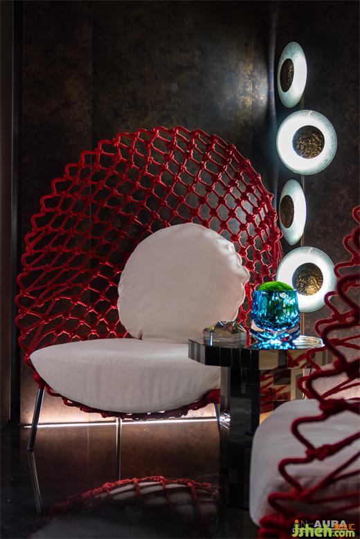 集传统与前卫为一体的Kenneth Cobonpue座椅,广州售楼中心设计将生命绽放的姿态勾勒得淋漓尽致,将空间的冷暖色调平衡。