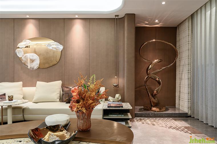 旋轉的雕塑如同時間的渦流,將空間內的一切靜態元素捲入無形的流動中,样板房设计訴説着不可言傳的深邃意蘊。在這一方天地中,激盪出難以捕捉的文化脈動。柔和的光線與暗示性的曲線相互輝映,編織出一幅視覺盛宴。