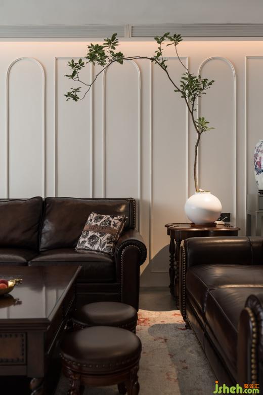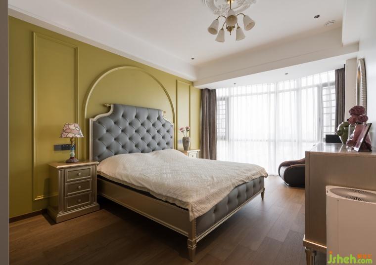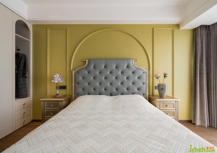 墙面采用暖黄色系,地面则选择深色木地板,增加空间层次感与温暖感。床头柜的花散发着优雅姿态,为整个空间注入生机与活力,让美式复古风更具自然的灵动。