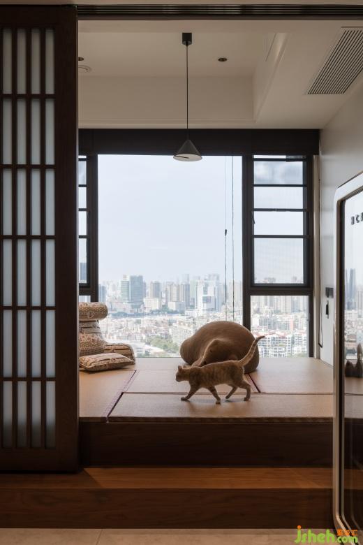 榻榻米功能房不拘于形式,不拘于风格,混搭和谐就好,可坐可卧,朋友来了,可升降上来聊聊天玩玩业主最喜欢的纸牌,门一拉上,则是一个独立的客房。