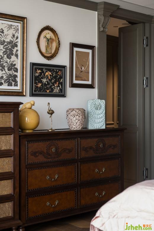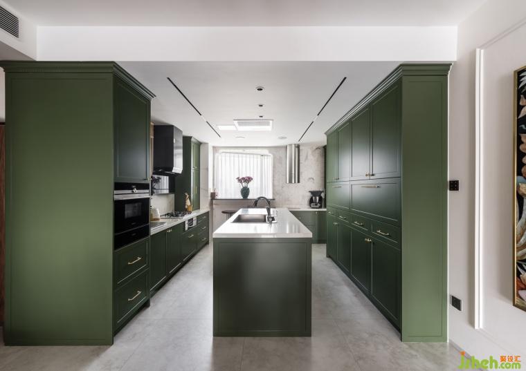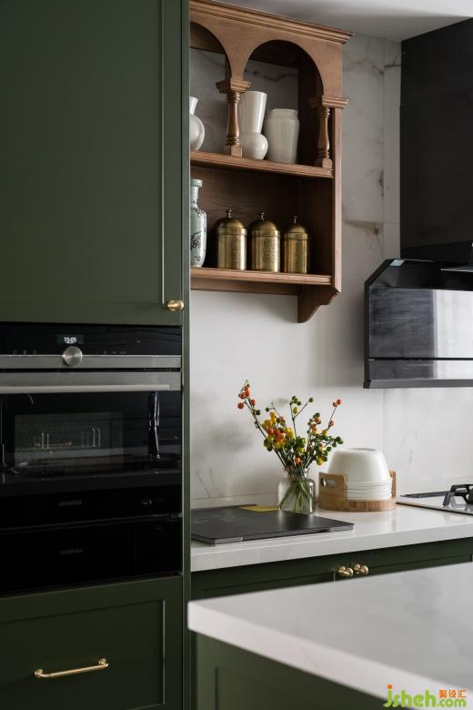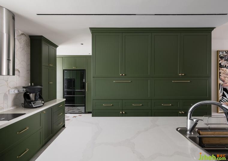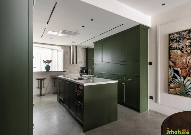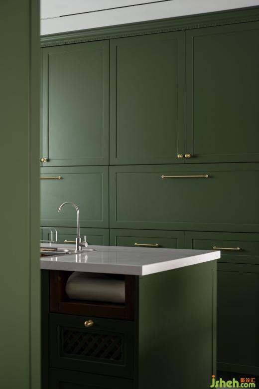 衣帽间融入了复古花砖点缀,绿色椅子呈现出独有的品位,颜色搭配主打浓郁深沉,每一处角落都弥漫着日时光的迷人魅力。