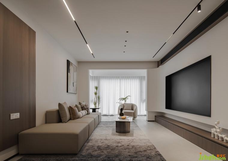 这是一套空间宽裕的平层式住宅,我们从观景采光、通风逻辑、结构表达三个方面,进行空间规划。结合房子本身的优势,以及房屋劣势,打磨出了一体化设计。