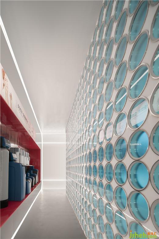 水,净化万物,将蓝色与白色结合作为空间主题色,蓝色水纹的出现使极具现代感的空间多了一分柔性。