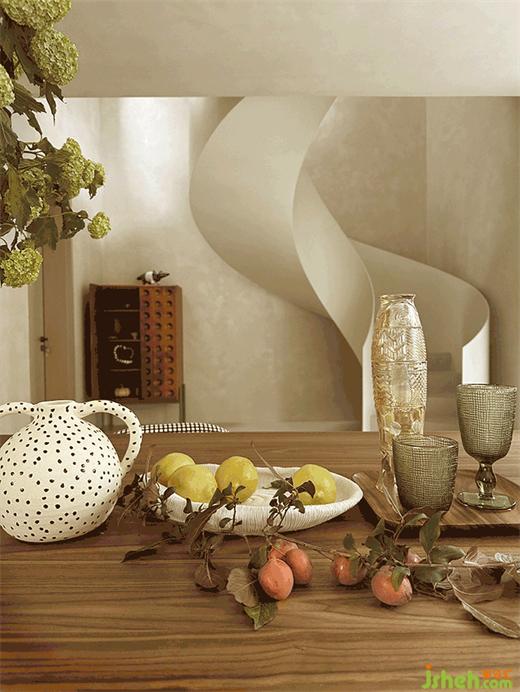 家装设计天然石材的吧台与中古感的木质餐桌,组合呈现出自然又质朴的轻松氛围,柠檬黄的arflex Marenco面包沙发点缀其中,搭配波点的小边几又为其中注入了几分明媚明快的度假感。