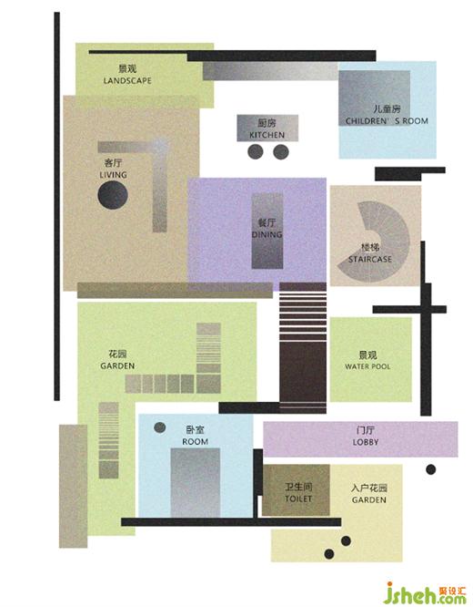 在如今这个复杂与矛盾交织的世界中,家也变得充满了流动性。越来越多的人们选择在第二空间栖居,并在这个过程中进行着对家的解构与重构。家也超越了空间实体单纯的物质性,成为具有情感、经历和社会关系等多重人类意义的想象空间。家装设计正如客厅中央挂着的那幅逍遥子的《物象》,人们在维持的秩序之下,在肆意挥洒的色彩中探索自我与诗意的表达。第二居所与第一居所也重新构成了完整的“家”的意义。