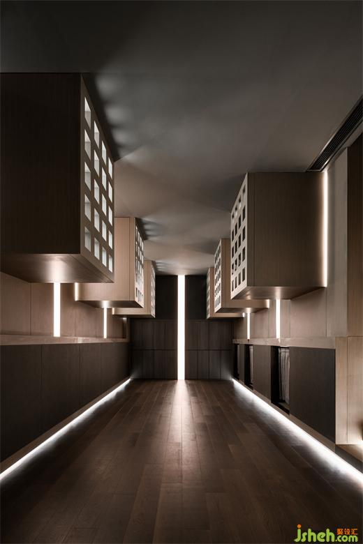 一旦人们进入狭长亲切的水区,则立刻能感受到上海里弄街巷的意向。毕竟弄堂始终是上海市民社会的具体呈现,设计师选取这种空间结构和比例,抽象地还原旧上海的精神。