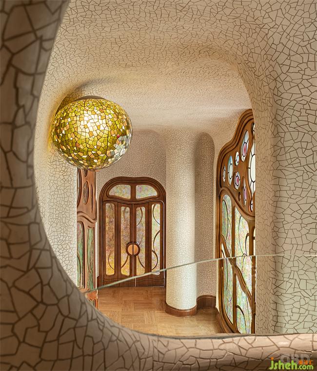 空旷洞穴的内部,几乎全是柔软而美妙的波浪线条,售楼部设计形成一个扭曲虚幻的童话世界。天窗的光透过彩色玻璃,在天顶中心形成了一道富有魔力的漩涡,不可思议的曲线和波浪造型随时都会旋转起来。