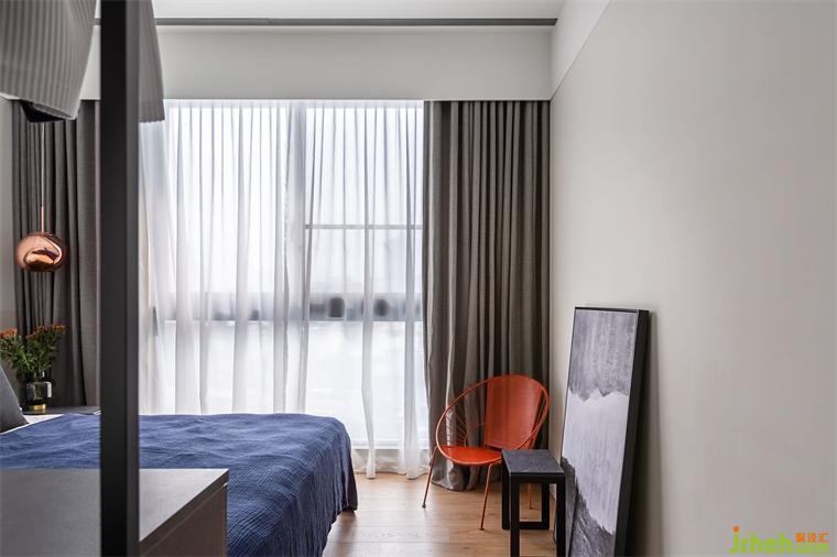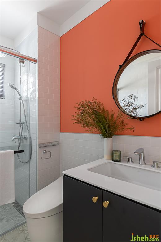 客浴大胆使用珊瑚橘墙面做跳色。次卧采清爽的北欧简约风格,让留此过夜的客人感受到男主人的热情待客之道。