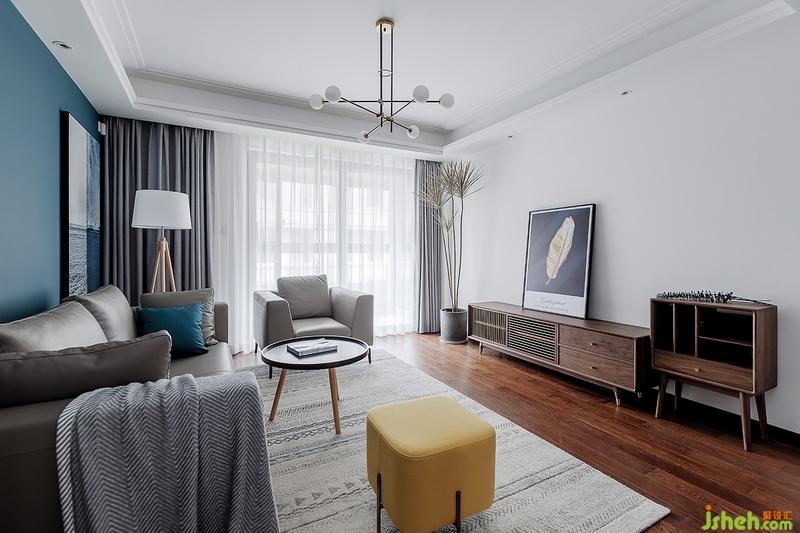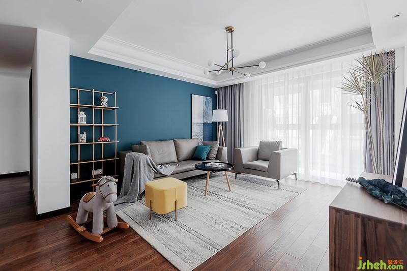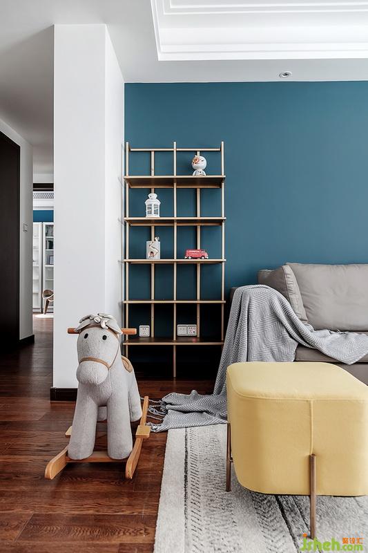 ▲整个起居室贯穿全屋的色彩搭配我们都只取一个蓝色铺展开来,原木本真的木纹感是最舒适的色调,而大面积的留白处理让空间对光线产生更多的折射,少即是多,一抹微蓝、半米阳光便是如此。