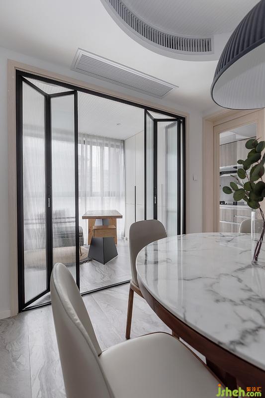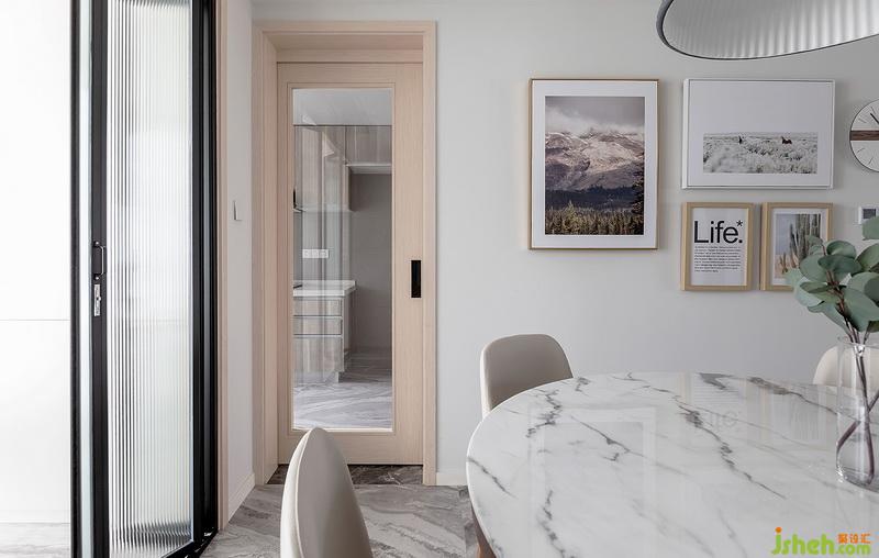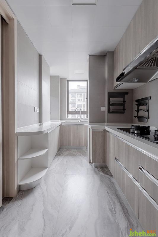 厨房采用的是双饰面材质,拥有了天然木纹的质感,同时兼顾后期油渍的清洗;而卫生间淋浴房则选择了天然的火烧板,拉槽处理+火烧面特征,使得淋浴防滑和自然人文气息。