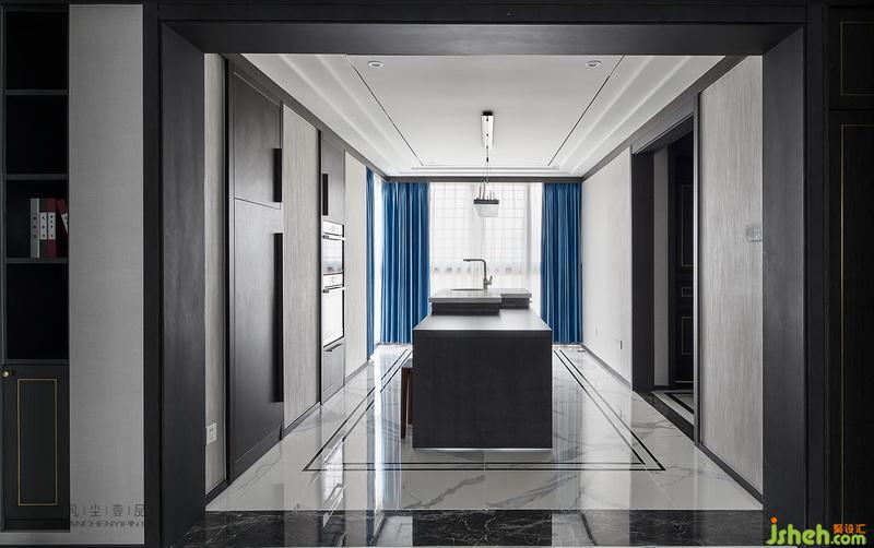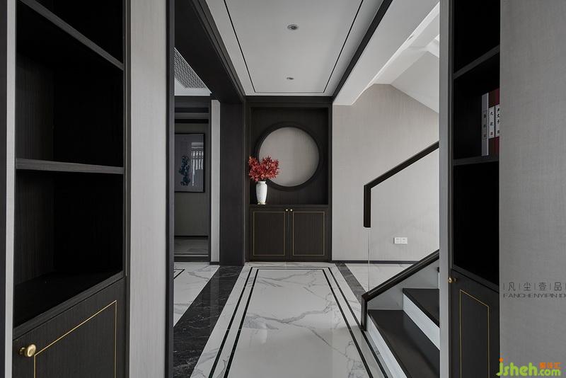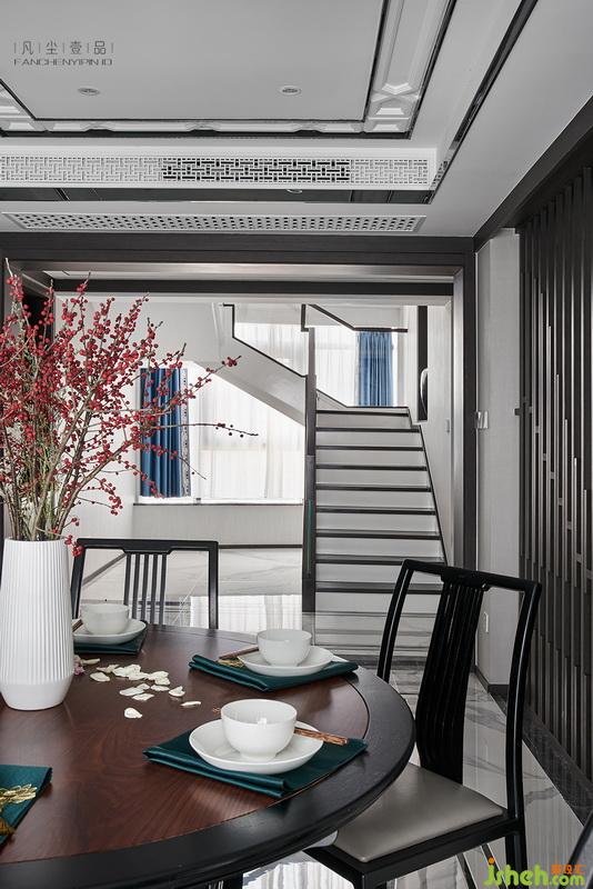 1到3层的回型楼梯设计,又恰到好处毗邻全明落地窗,让整个室内空间和中庭豁然开朗,钢化超白玻璃扶手,搭配黑白相间阶梯,用现代气质硬装意境之美,让空间显得更通透和阔达,配合整面通高柜体,犹如一幅泼墨的山水画卷,给人飘逸的东方韵味。