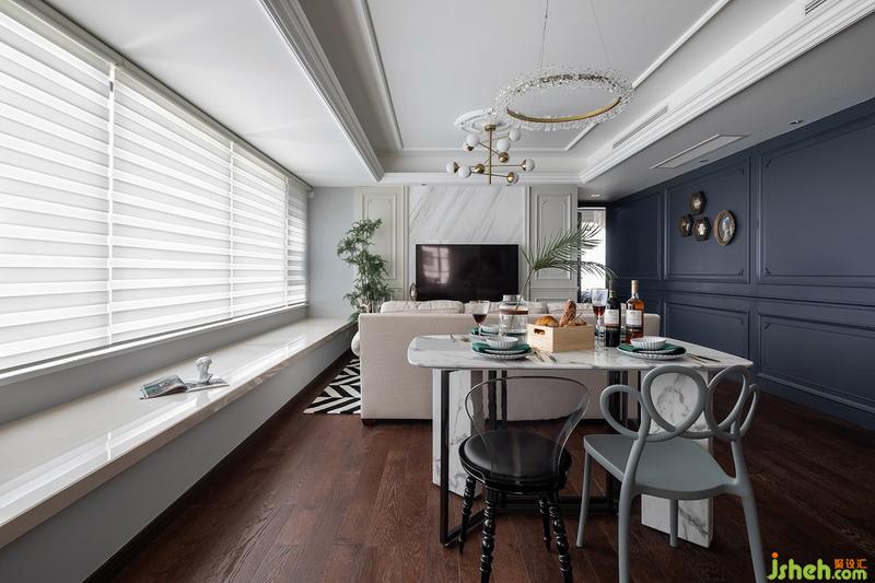 人性化设计怎能少了智能方案呢、我们的设计师前期在硬装改造的时候便对原有的水电布局都进行的优化和改动,以便于满足全新的设计空间和功能需要,客厅的柔纱帘是采用多段式智能控制,可以随即停在任何一个位子。