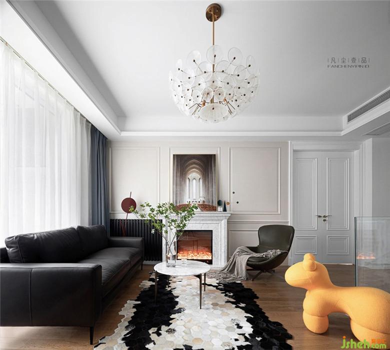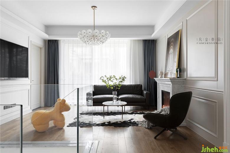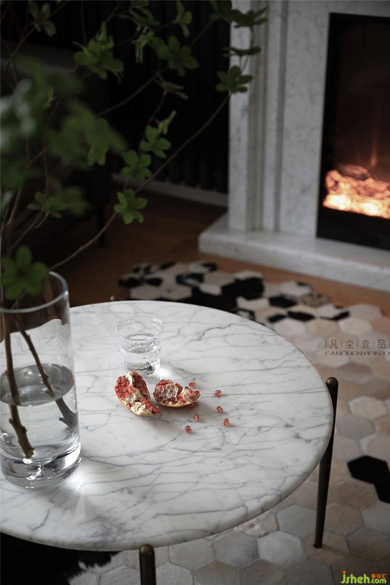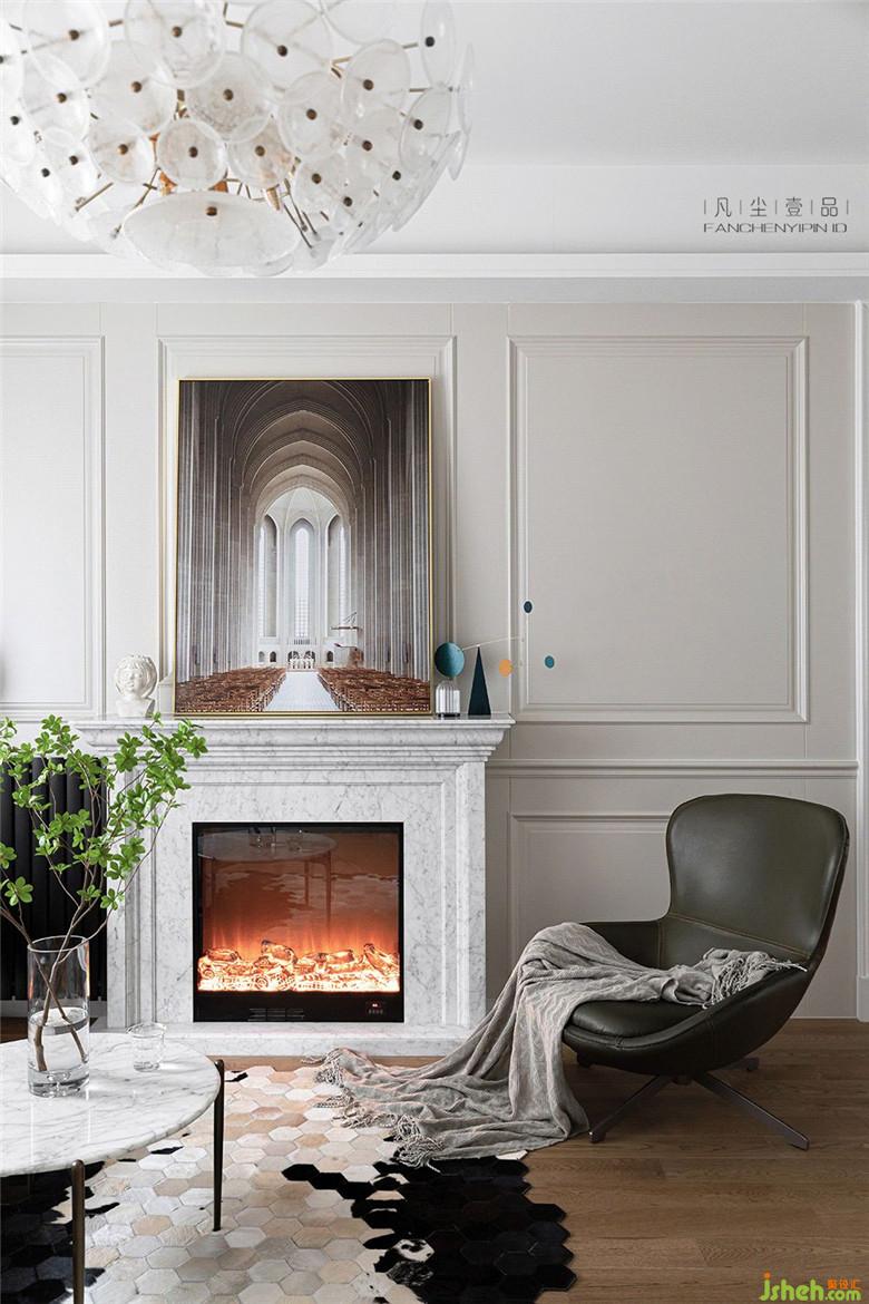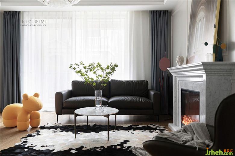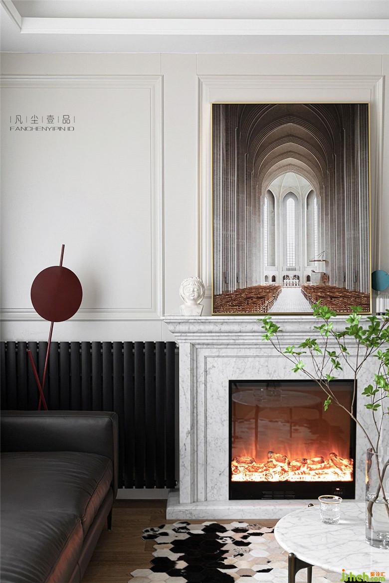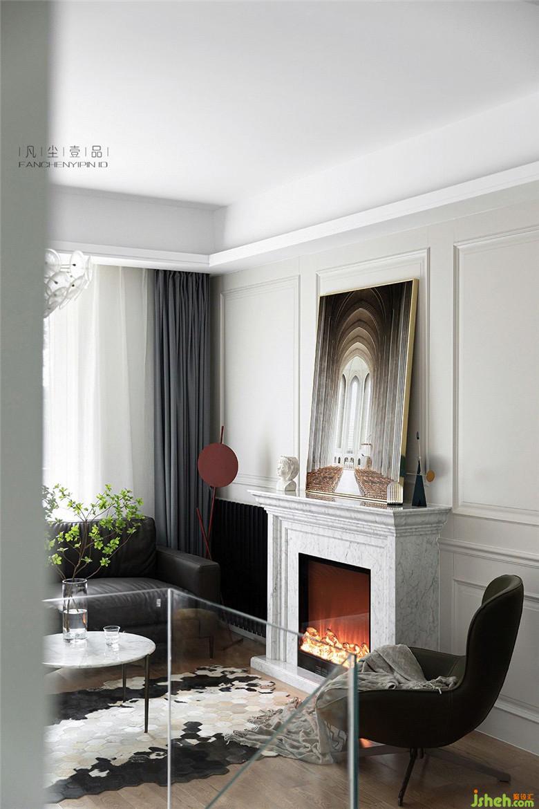 新加的大理石壁炉可能其本身的意义并不在于采暖,因为设计师从功能上已经把采暖片放到了这个角落,作为烘托温馨的家居氛围而存在,柔软且有型的皮质沙发可以让居家多一丝干练,不慌不忙的感觉刚刚好。