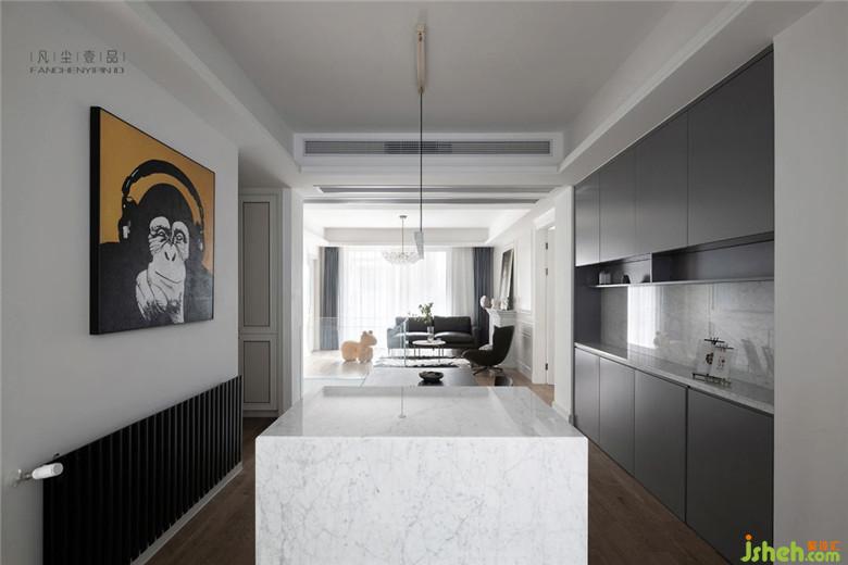 PS:注意要点(前期需要考虑电源的预留位置,电器的实际规格尺寸和通风)考虑到美观效果,让大理石厂家提前打好10mm的通风口,而整个大理石侧四个面并没有完全落地(基层先落地,地板撞基层),实则为了考虑到后期地板热胀冷缩后的伸缩空间,后期卫生只需要一个吸尘器便可轻松解决。