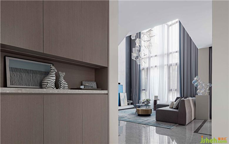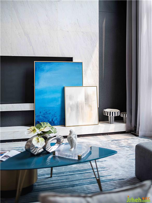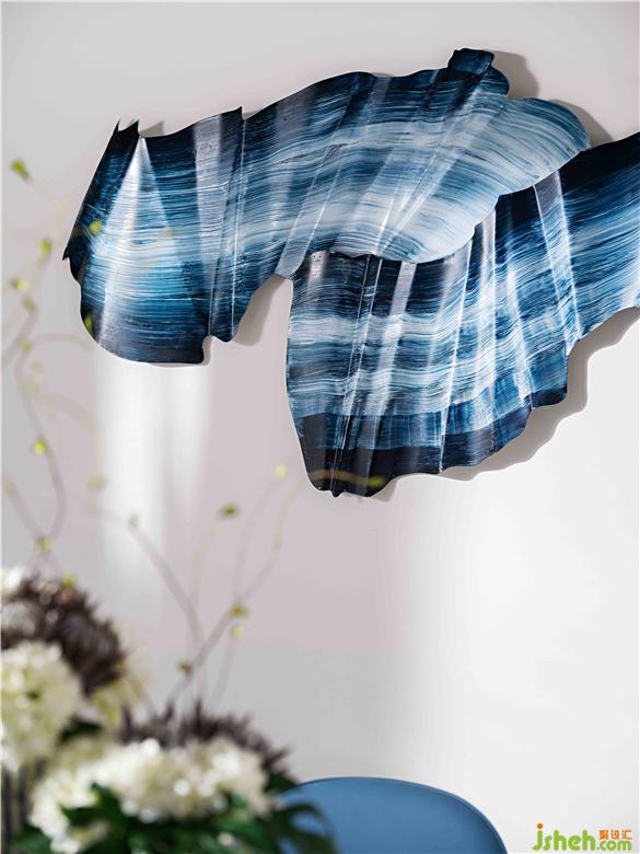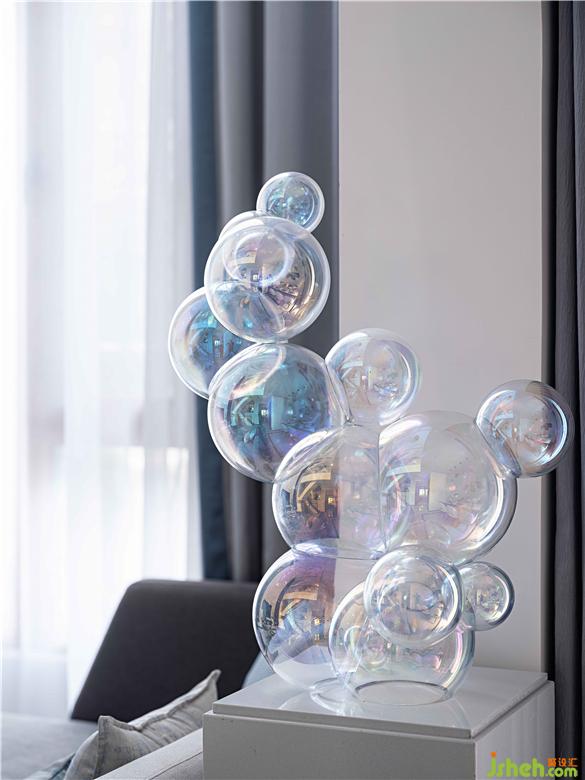 精致的高级灰、清新的蓝,搭配手工金属摆件,透明质感的材质,变化的光线,氤氲一个轻盈、灵动的现代美学空间。