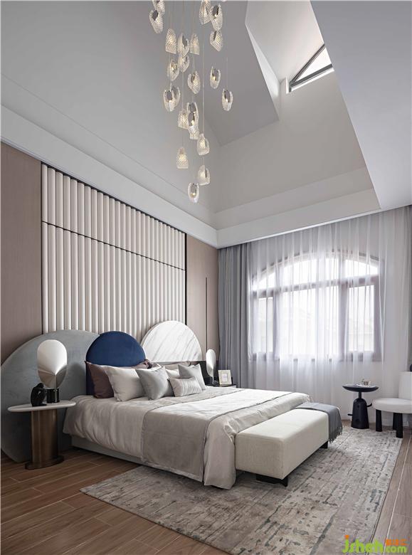陷入绵绵不绝的思考之中,样板房设计达至独抒性灵的境界,轻灵的空间律动予人飘逸变化的美感,明净与清鲜的色调表达超脱束缚、飞升向上的梦想的生活方式。