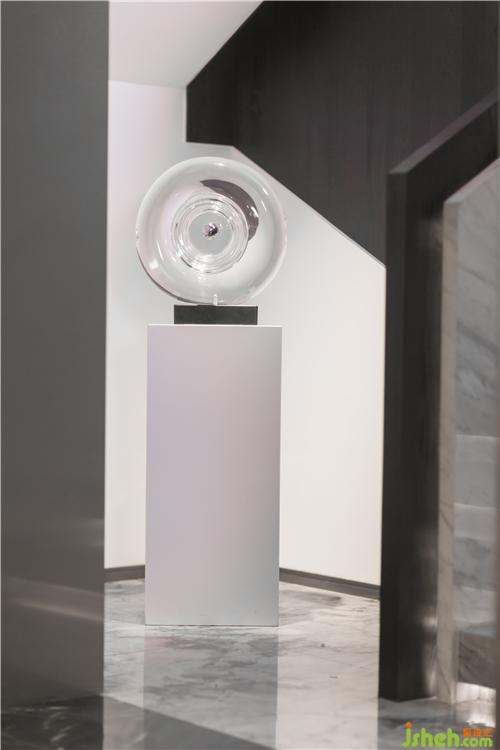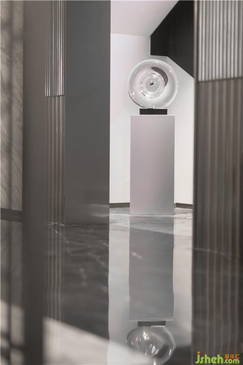 深深浅浅的灰色木纹糅合科技红LED灯片,形成理性而睿智的数学几何画面:低调的设计语言,配合高科技材质,现代简奢的品质生活态度,艺术、光影、生活在同一个空间维度相互融合,多维的跨界思维协同,雕琢出一个生活艺术化与艺术生活化相结合的艺境会馆。