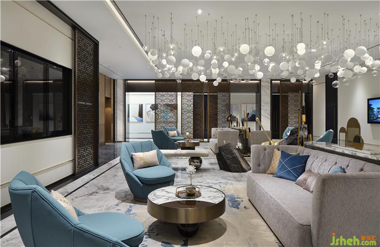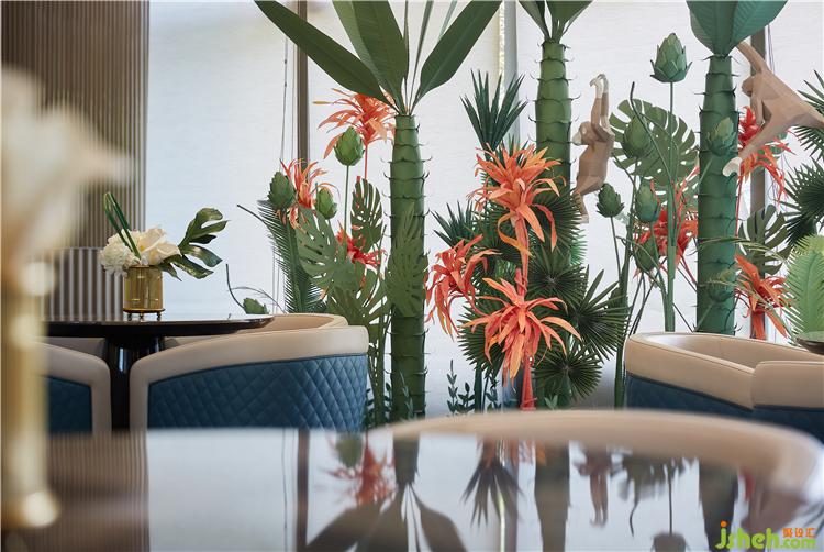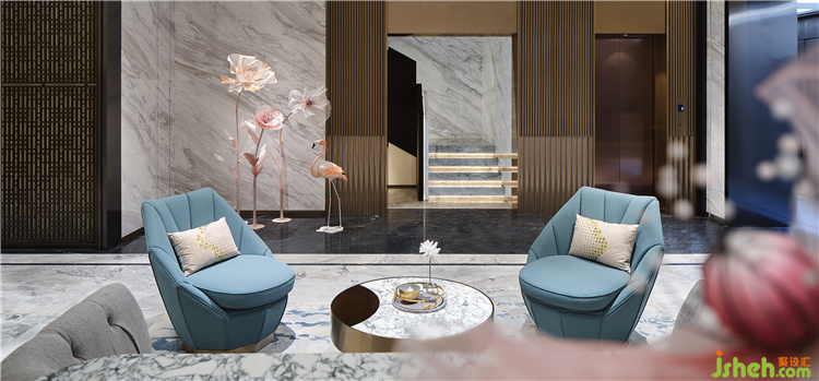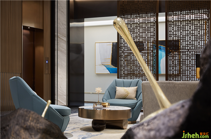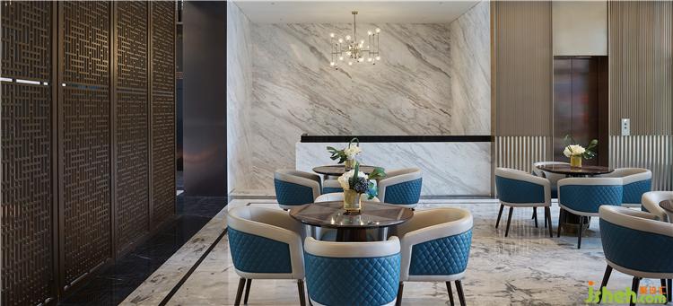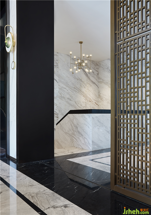 阳光与水徜徉共舞!满盈盈的水面融化在馥郁的艳阳里,摇曳生姿,几缕微醺的风刚好吹进来,粼粼的水波将水面分隔成千变万化的动态几何图形,设计师取其形,以更为立体的几何构图,运用至空间设计,跳脱地描述了这Art Deco式的大都会艺术岁月。