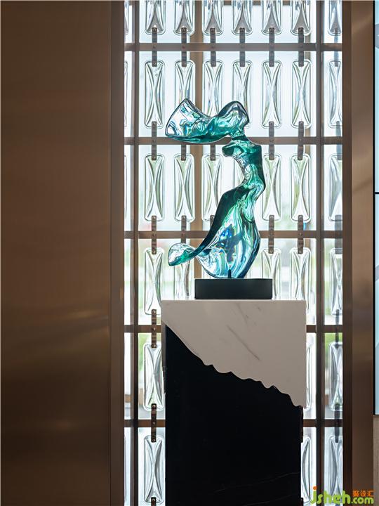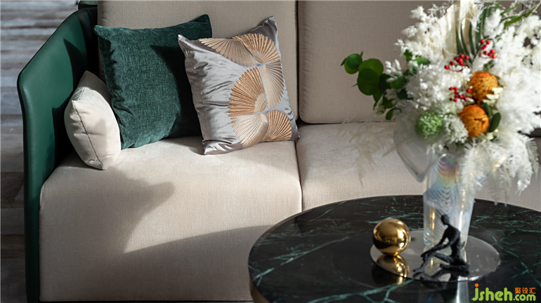 本案营销中心设计以流行色米色为基调,呈现上海文化的雅致与高级基调,参考老上海建筑和平饭店、旗袍、团扇、黄浦江、黄包车等元素,试图带领来访者重新穿越到四五十年代的老上海芳华。墙面借鉴时光长廊的拱门设计,有着扑面而来的复古风;以旗袍文化复刻老上海装饰艺术派的高雅精致腔调,雕塑以飘逸的裙摆,旋转的曲线展示摩登女性魅力,体现东方的韵味与西方的浪漫糅合碰撞。室内椅子、枕头等家私上多处以细节营造出上海风情雅致,有黄埔江上江水滔滔,货船川流不息,江边黄包车、小汽车来来往往,载着商圈名人、摩登小姐来到和平饭店,将这座城所独有的气息浓缩在此。