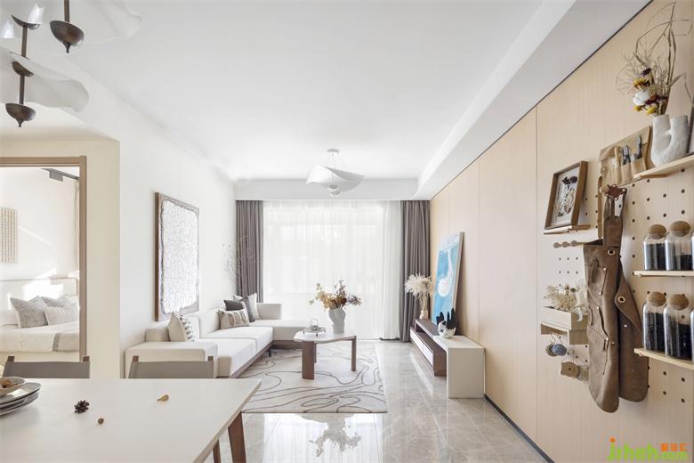 本案设计灵感来源样板房设计汲取日本极简品牌——无印良品的简洁,品质至上,以棉麻、少量皮革、金属和纸艺,提取经典原木样板房设计色,在细节中展示着设计中自然、简约、质朴的生活方式,让生活像呼吸一样自然舒适,随性美好。