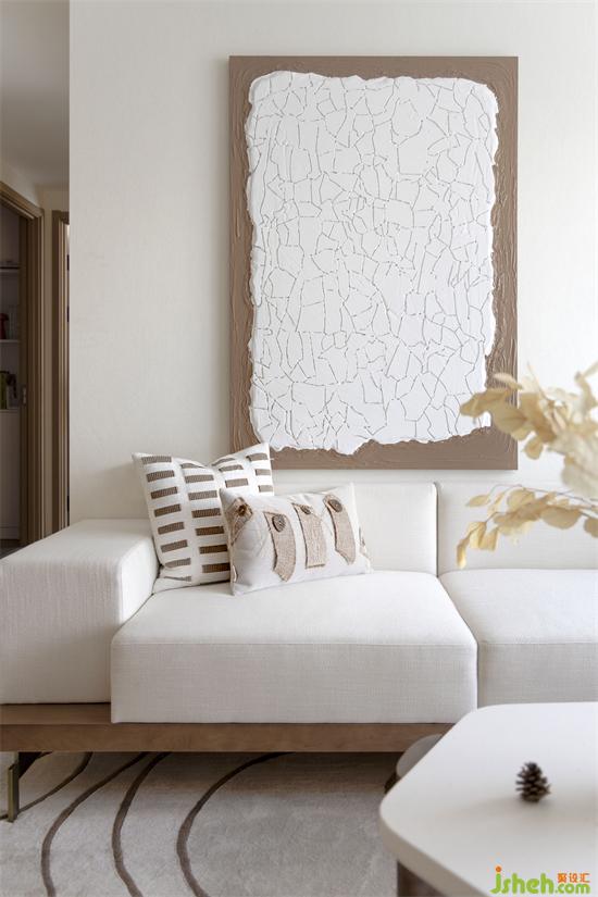 空间在大色调上运用了低饱和度米白色为基础色,利用大地色来中和样板房设计空间的视觉,少许的天际蓝作为空间的点缀色营造出温馨舒适的氛样板房设计围。