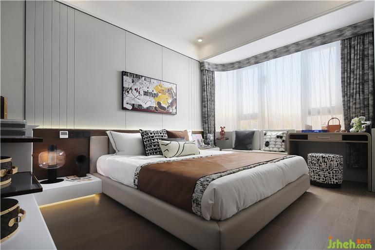 重庆样板间设计以经典的沙漠白为主色调辅以简约动感的橙色元素,这个家最打动人心的地方在于它的光线,设计师最初设想时就决定要尽可能保持卧室的采光,呈现出极简和谐。