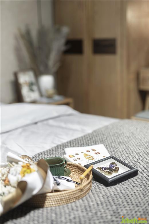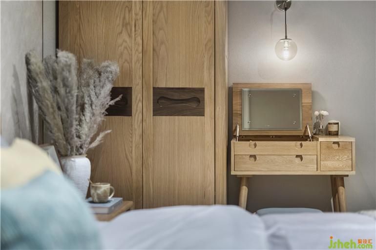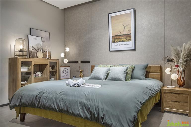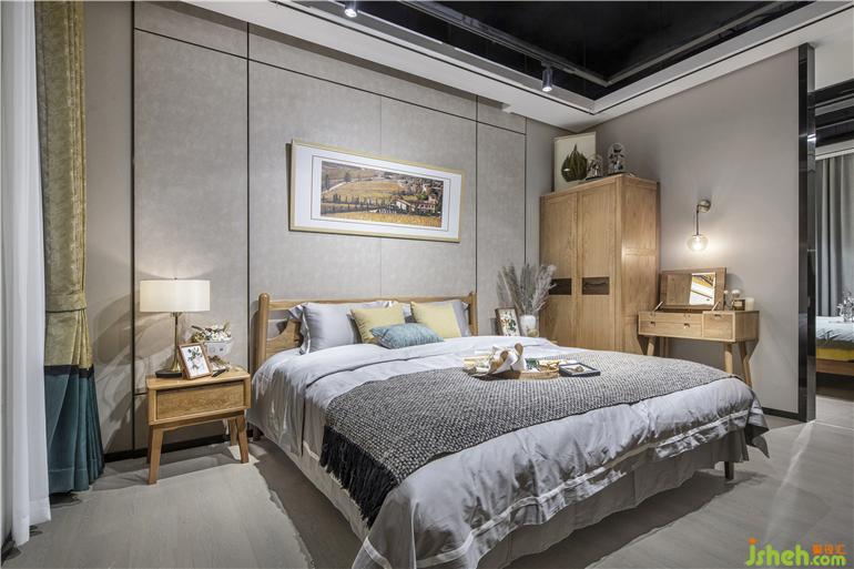 北欧金秋原创艺术地毯,白、绿、褐色相间,犹如俯瞰无垠的北欧山丘;精致细腻的设计理念铺陈于空间每一个角落,展厅设计窗帘沿用静逸的绿色与明朗的玛雅黄配搭,营造清新闲适的田园居住感。北欧金秋主题元素的运用既大刀阔斧又细致入微,沙发抱枕以简洁的几何造型图案,配搭整个套系的主色调玛雅黄与翡翠绿,与空间的整体童话意境相得益彰;主卧则包含床、床头柜及梳妆台,简练质朴的线条与原木色调,氤氲静谧恬淡的生活氛围,天然的木质纹理,触手可及的自然温度,打破居所与自然之间的隔阂。