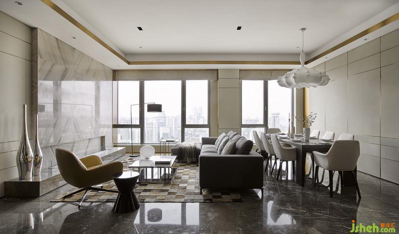 凭借对高端豪宅的深刻洞察以及驾轻就熟的操刀经验,设计师方磊以抽象现代的视觉符号探索原法租界的别样生机,“通过对地理位置的考察,将建筑与环境的共生特性融入到材质的变化中,寻求一种对撞与平衡之法,尽展繁华都市风貌。”方磊如此概述其设计宗旨。