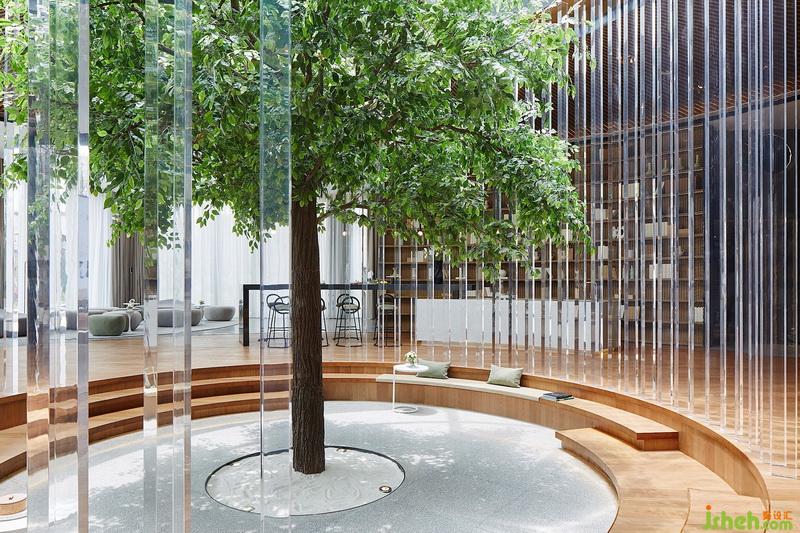 此外通过下沉式设置,高低错落让这一隅更具玩味。绿色象征着生命力,也隐喻着成长意义。置身树下,可探寻和享受自然界的清新舒适,生趣盎然。于某种层面而言,这也是苏州现代生活与园林情节的一场跨时空演绎。