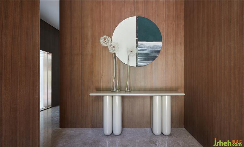 独立的玄关,以个性端景台作为承载,开启归家的仪式感。纯粹克制的视觉中,又不乏含蓄的肌理变化。于此间也有整个空间中形、色、质设计要素的映射与缩影。