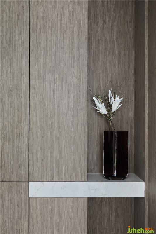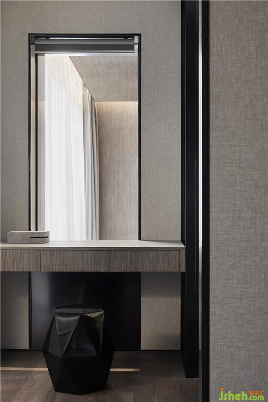 主卫墙面、地面由同款石材一体而成,置入圆润的镜面,可谓干练之中恰到好处的融合与均衡。样板房设计