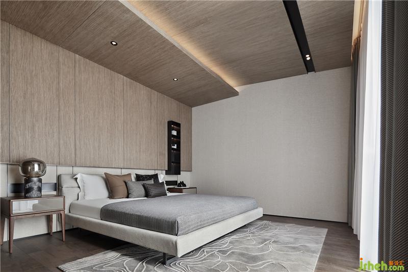 大范围的木质包裹,凝练出简朴温润的气息。设计师借由露台打造卧室之外的惬意之隅,进一步为其配置更高居住品质,体现卧室设计的周到考量。样板房设计