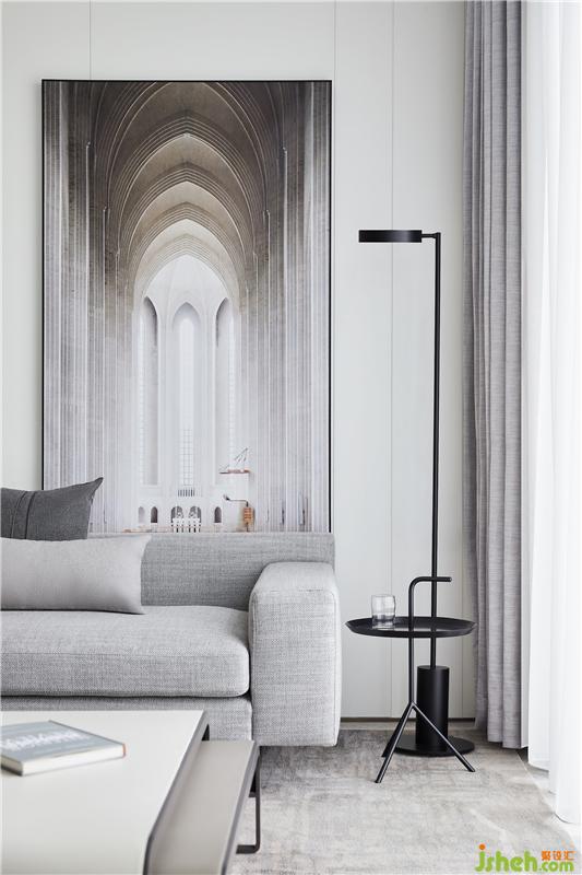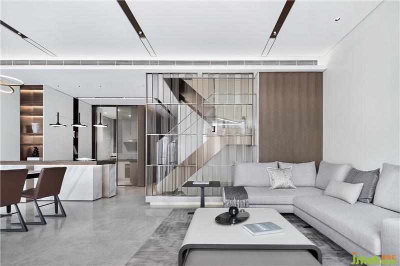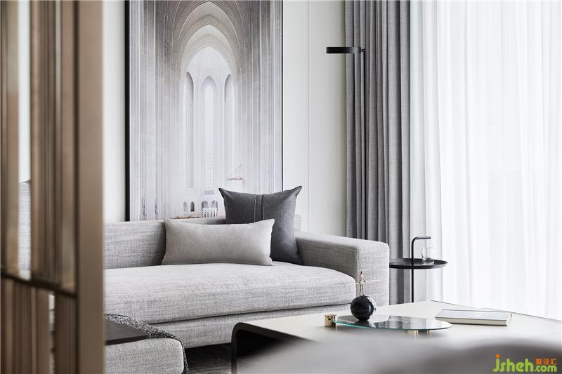 阳光透过窗纱,光线点点落于柔软布料,这一瞬的客厅仿佛成了永恒。设计师摒弃虚张声势,舍了繁华堆砌,去除多余的墙体,借由金属格栅的虚实效果,连接多个区域互通对话,简洁的线条,温和的色调,安宁地诠释出静谧轻奢的格调。