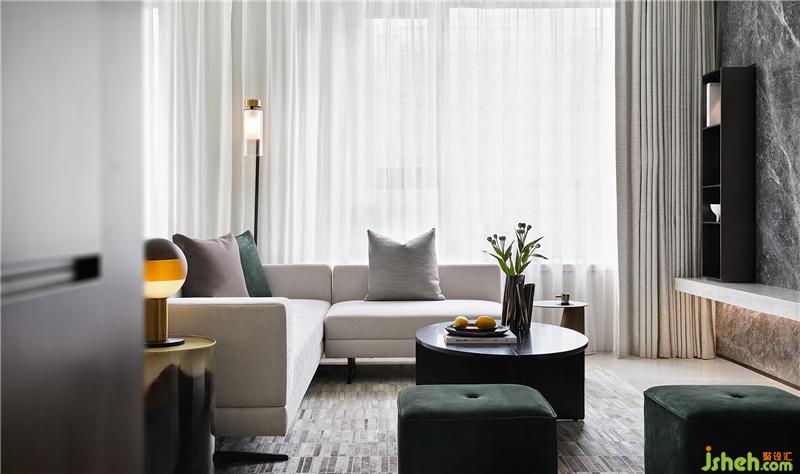 日照轻纱下的客厅,在沉静、舒适的氛围里,质感与恬静气息暗自弥漫。背景墙的壁龛巧思灵动,以积木拼接的构成手法,凸显趣味之感。