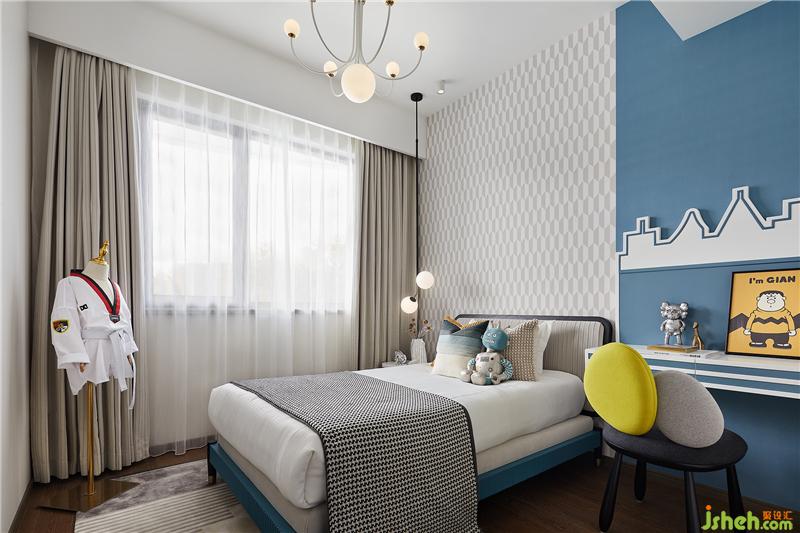 儿童房在遵循简约的原则下,又要顺应孩童天性,统筹色泽、形状、搭配,同时又让动漫、运动主题相伴相融,勾勒出一个可达成丰富感知的私属基地。