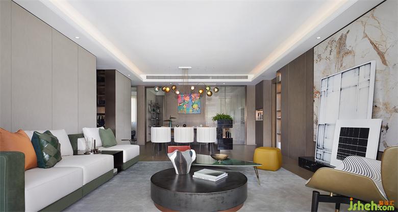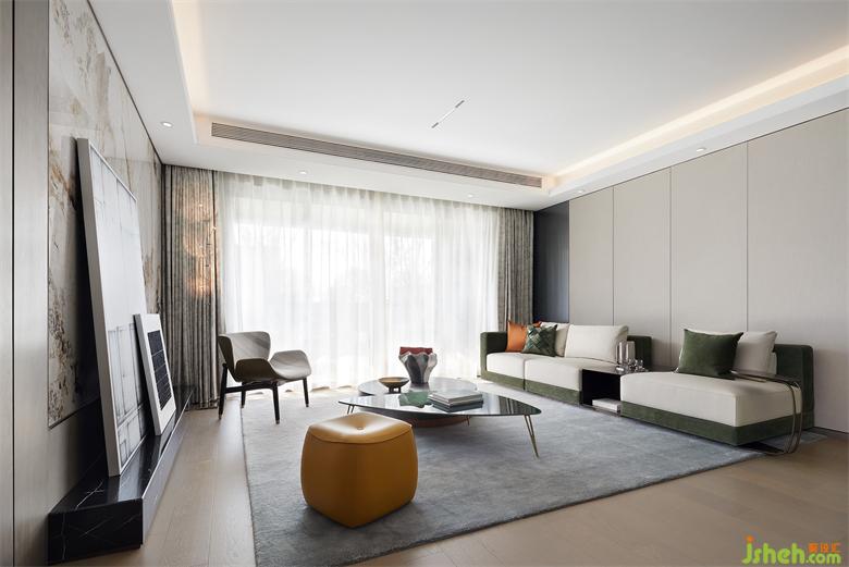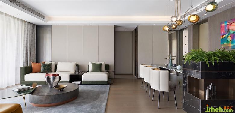 “不同的生活态度造就不同的空间模式,不同的情境营造也能引导不同的生活方式。生机绿意是都市居所中珍稀的,格调美学也是为人所挚爱的,我们以此为切入点,用现代国际风范作基调,于绿野之境构建人、自然、艺术品的共生对话,在感性与理性交融间惬意遨游。”设计师方磊娓娓道来其主旨意图。