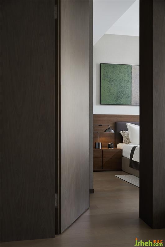 金属与木质在此相遇,加以柔光的点缀,让搭毯化身幕布,创造安静优雅的衣帽间,这一隅也足以吐露出居者不俗的品味。