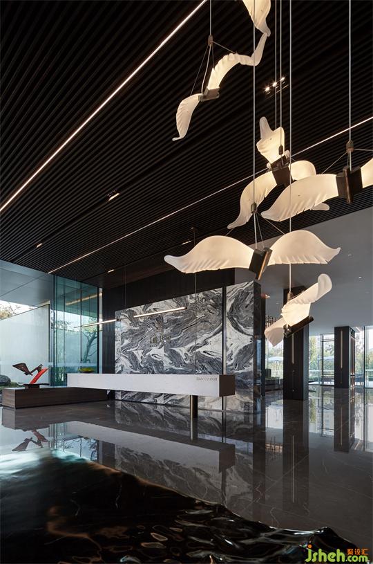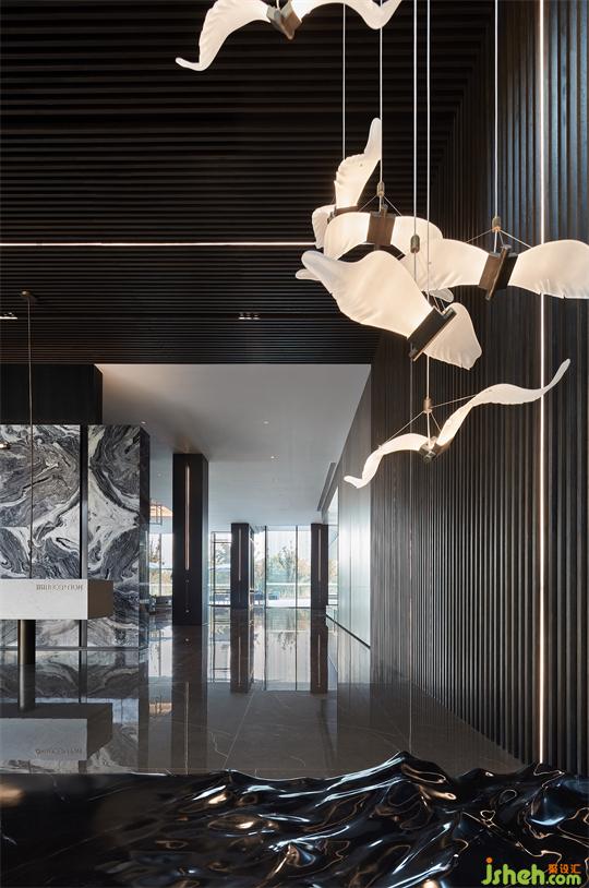 “人是空间里的重要组成部分,因此深度剖析参访者的功能需求、视觉倾向很有必要。基于对建筑造型的解构与提炼,室内设计也以灵活交错的思维来展开。我们合理规划布局,践行克制平衡之道,并赋予其序列感与仪式感,打造出集售楼处、会所于一体的复合型空间,力求营建出更多维度的体验,和与时共进的创新能力。”方磊概述道。