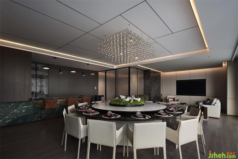 沙盘区宽敞明亮,拒绝繁琐造作,在角落设立金属网,既起到中和缓冲之效,亦有一种半围合的神秘感。值得一提的是,这同样也保证了其开放、通透的氛围。