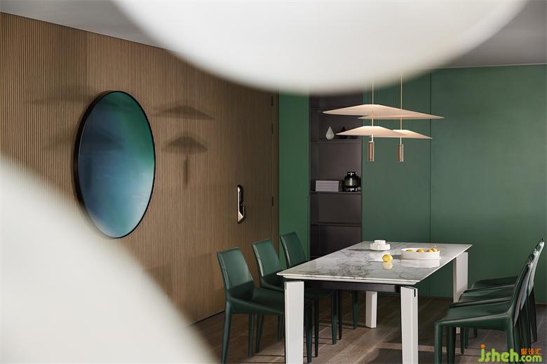 绿,不仅仅是视觉传达的外显,也是一种态度,更像是一种生活方式。设计师对绿的灵活运用,不拘泥受限,节奏的把控、疏密的调和赋予室内耐人寻味的美感。