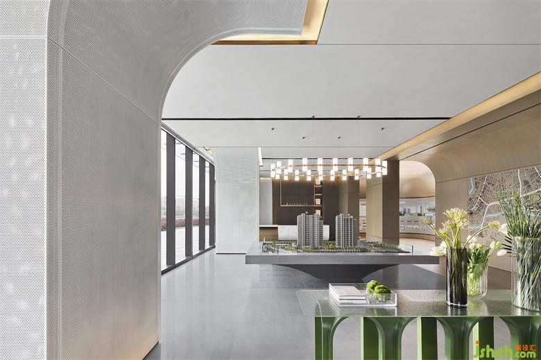 访客视线随着多样元素的层叠错落,轻松、舒适的洽谈区域便呈现在眼前。得益于对透视法则的精准把控,多种落座形式的布局,尺度感与秩序性依旧合理且清晰。南京售楼处设计临窗处,沙发、饰品的形状,同样饱含深意,与弧形的建筑外立面巧妙关联响应。