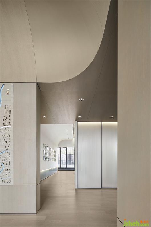 值得一提的是,区位图镶嵌于一侧立面,精湛的木雕工艺使其宛如一幅打开的画卷,南京售楼处设计展示出这片土地的格局与繁华、沉淀与坚守。它既和木质背景形成契合的完整表达,同时又自成主体,承载起极为重要的功能属性。