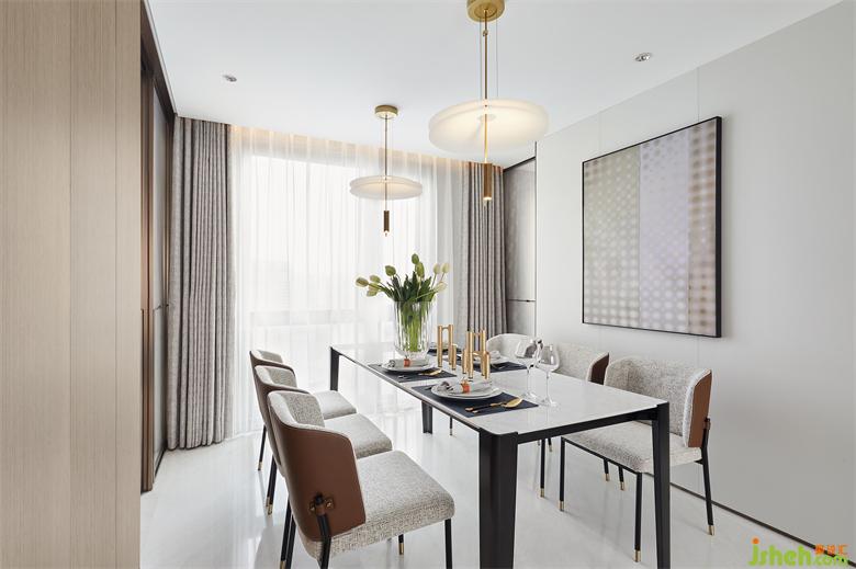 归家,本该松弛且融洽。南京样板间设计客餐厅一体开放式布局,简单纯粹且质感十足,让都市的俊朗风貌跃然流露。