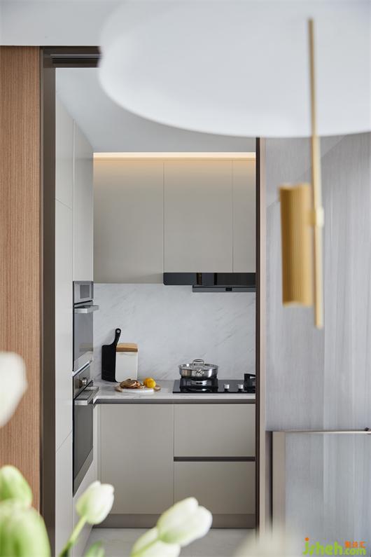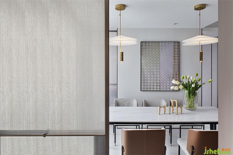 流动的美感与酣畅的呼吸在餐厅处得以充分体现,作为中枢所在,它被客厅、厨房与书房自由地围绕,彼此功能完整之余,还保证互动交流性,切实关照居住体验。