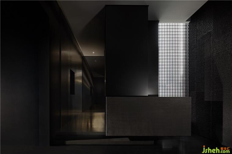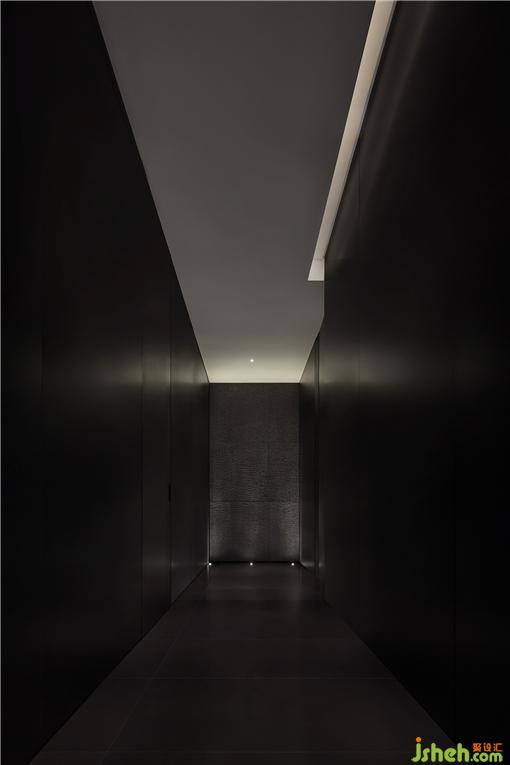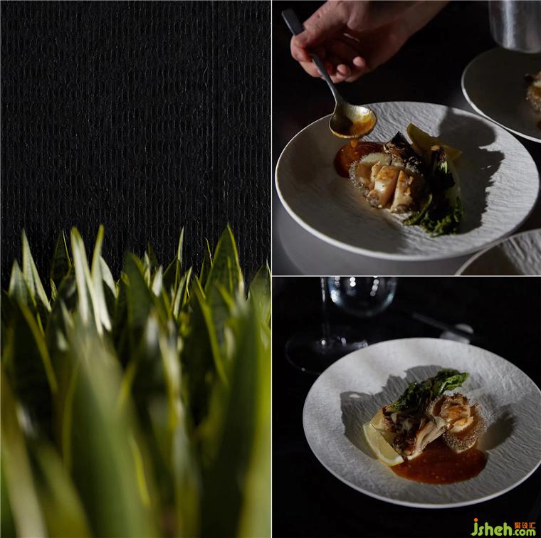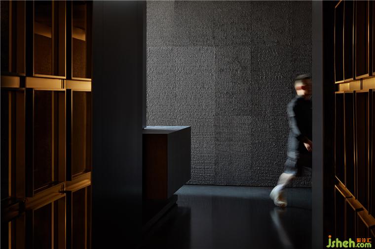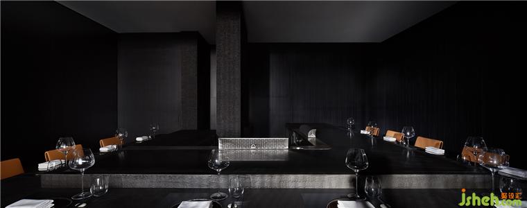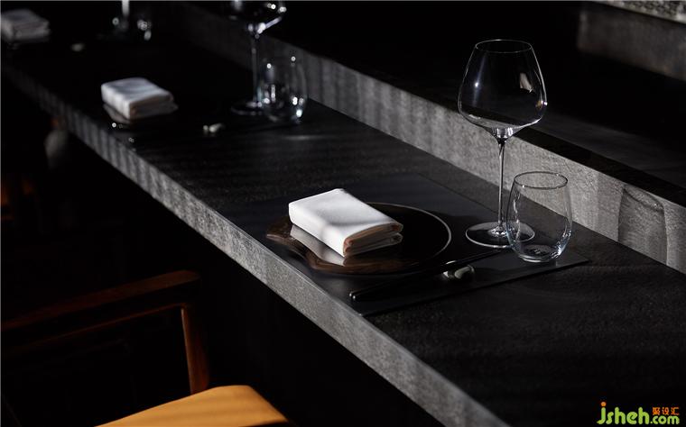 材质一路沿袭至横轴动线,同时也因地制宜加以变动。铁板烧餐厅设计一端借由不锈钢的折射,强调趣味性和延伸感。另一头则以墙体作端景,引导宾客踏入两侧的开放就餐区。