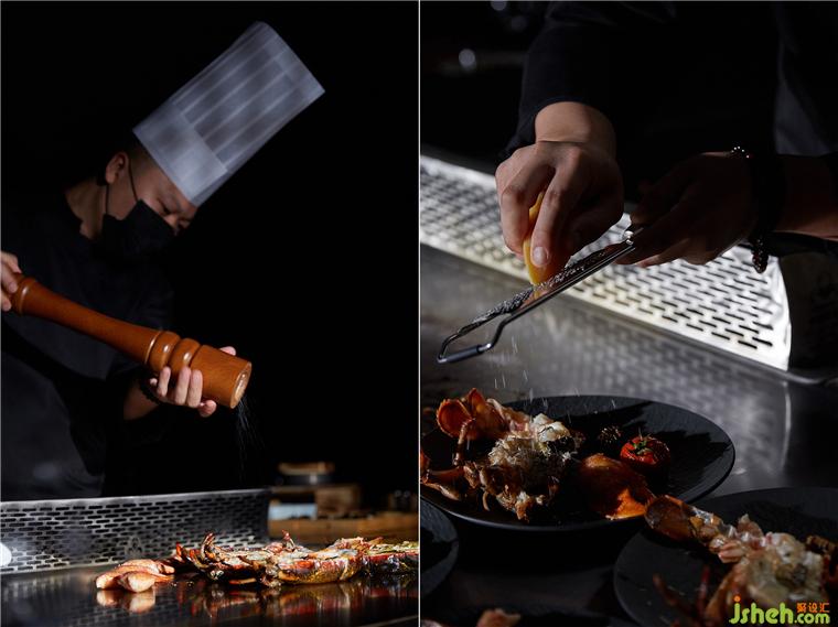 铁板烧餐厅设计基于用餐需求,移门隔断随之而出,开合之间,既可保留完整的开放体,也可机动独立,保证专享之需。这也是沿用“屏”的精髓,一屏之隔,两个世界,别有洞天。